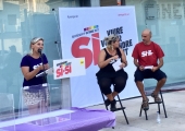 Carme Abril ha explicat els eixos de la campanya i el per què del lema, l’aforisme de Gramsci, «Sí, viure vol dir prendre partit», que situa la vida al centre de tot: «viure vol dir feina digna, prenem partit pels drets laborals.